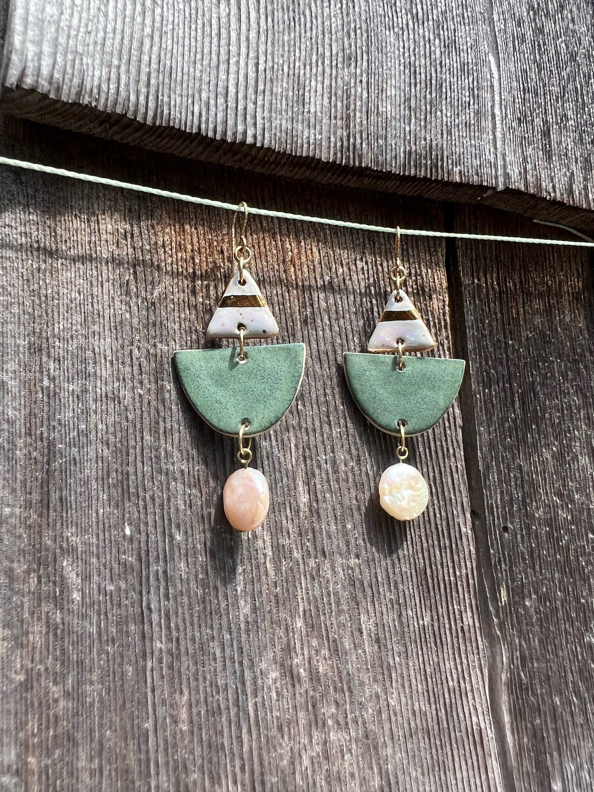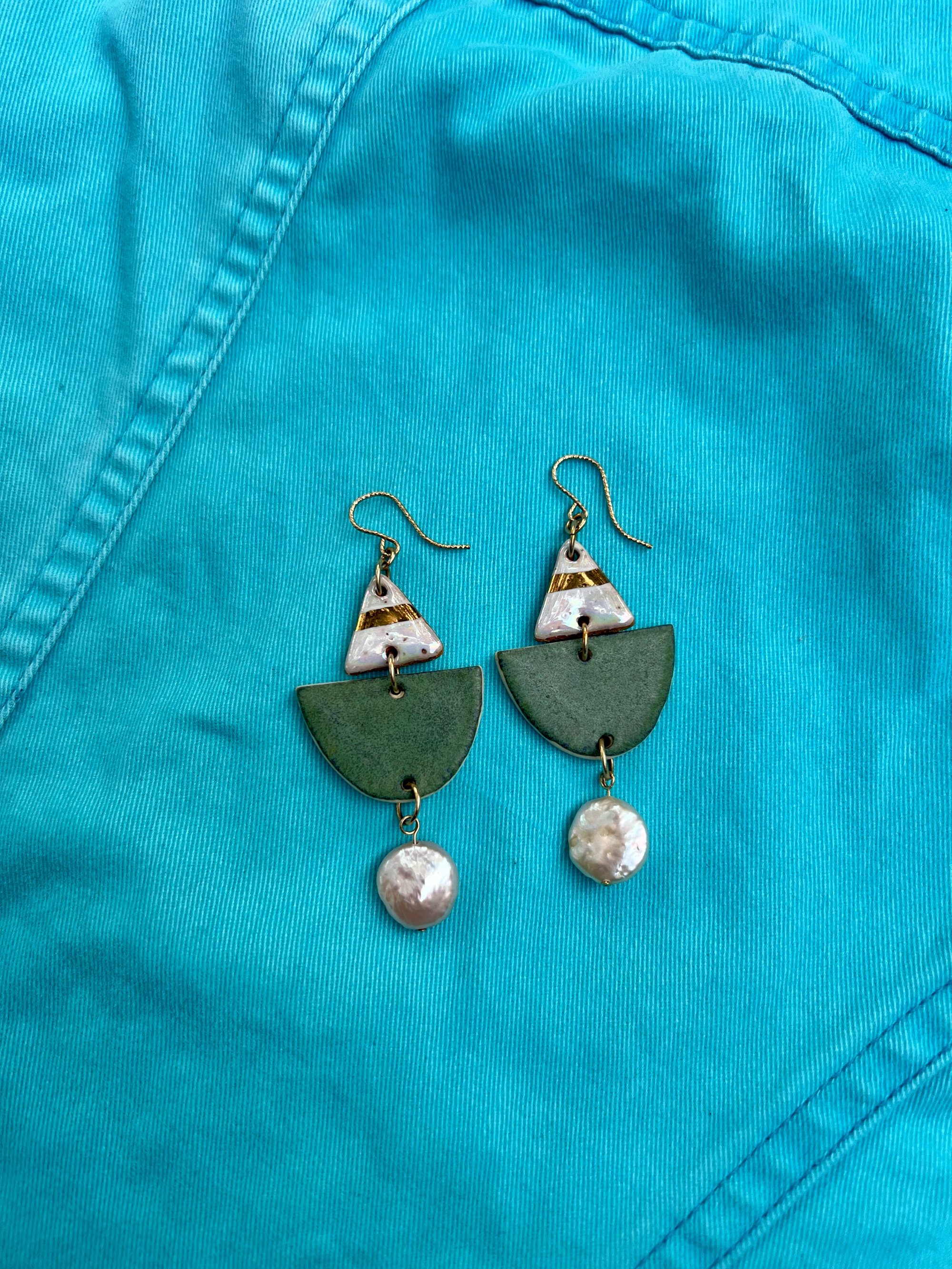 Hand cut ceramics earrings, speckled + white clay.