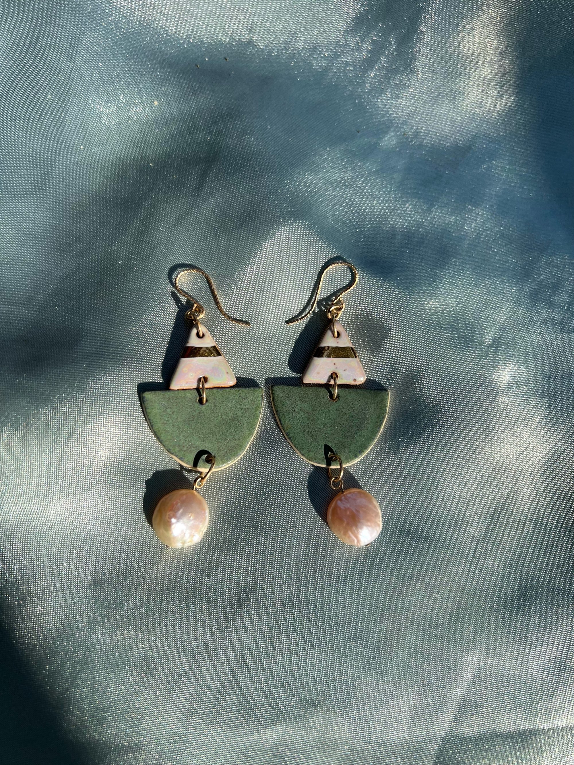 SAIL EARRING - WHITE OPAL+ GOLD, BLUE STONE, PEARL